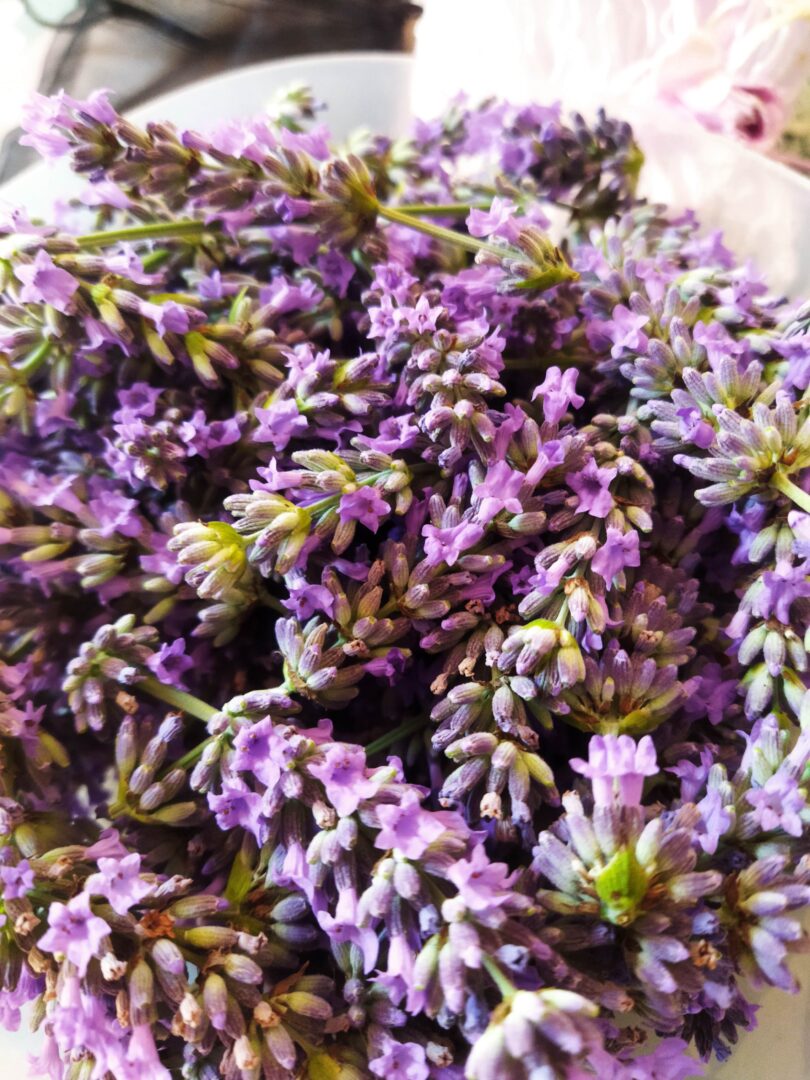 こうしてラベンダー漬けになっていると、またまた家にいっぱい咲いているラベンダーを放っておけなくなりました(笑)。確かここらへんにあったかも、と戸棚をあちこち開けて見つけたのはメッシュの袋。ということで、今度は花部分だけを摘んで、茎から花だけを取り外して袋に入れ、香り袋に。下着やタオルなどが入っている引き出しに入れるとふんわりラベンダーの香りがします。