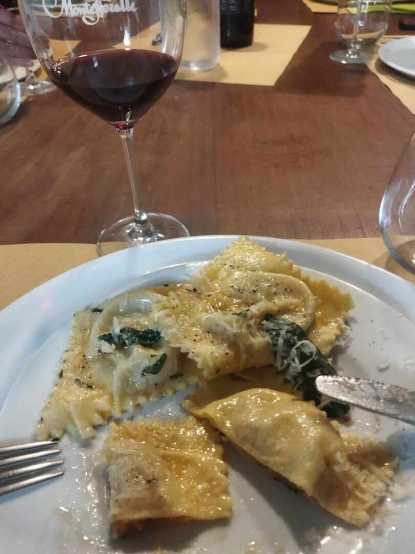 近所のワイナリーのキアンティ・クラシコと共に、皆で作った料理を頂きます。ムジェッロ風トルテッリは私も作る定番料理ですが、いつもはミートソースに合わせることが多いので、今回のようにバターソースで食べるのは初めて。ジャガイモを茹でる時のコツから教えてもらったのですが、いつもよりもグンとデリケートで口の中で溶けるのは何が違うのだろう?ジャンルーカの魔法!?笑。