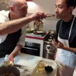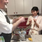 中盤にはプロセッコと生絞りオレンジジュース・スプレムータでアぺリティーヴォも! こうやって飲みながら、おしゃべりしながら一緒に料理するのが楽しいんですよね。私も爆笑中・・・というのは、全部で6人だって言ってるのに、ジャンルーカがボケボケで「合ってるだろ」って、もう1つグラスを出してくれなかったから。何回も数え直して、ジャンルーカ自ら自分の過ちに気づき(笑)大爆笑中。