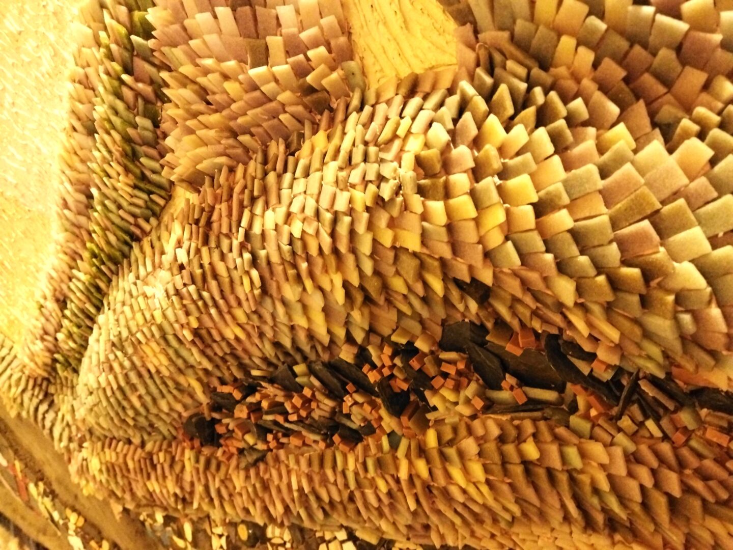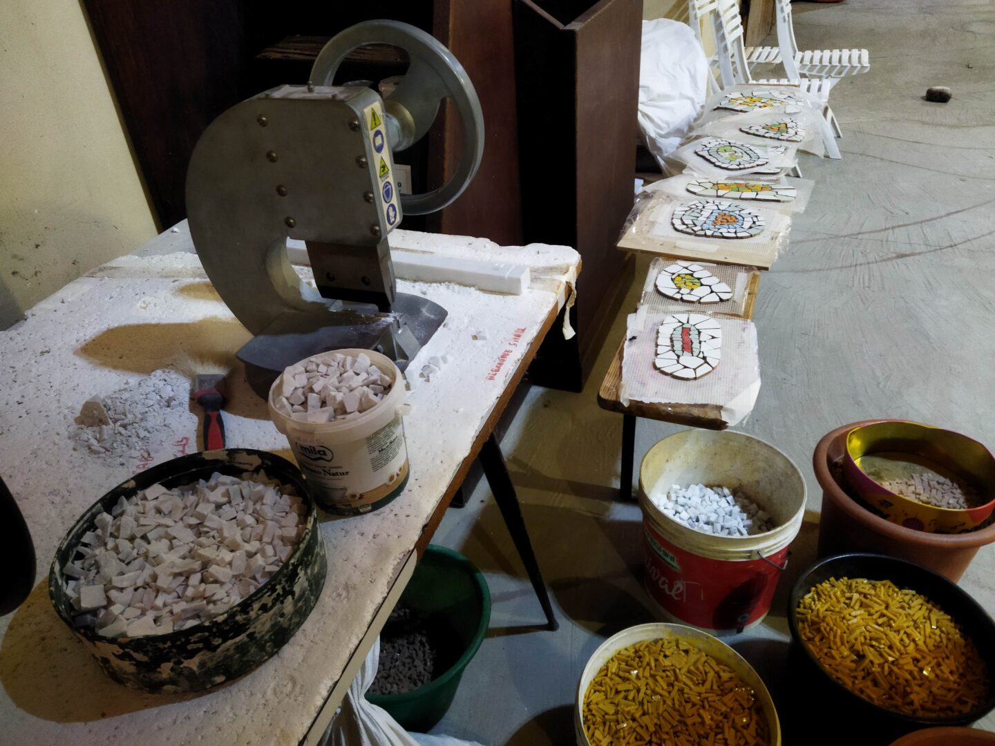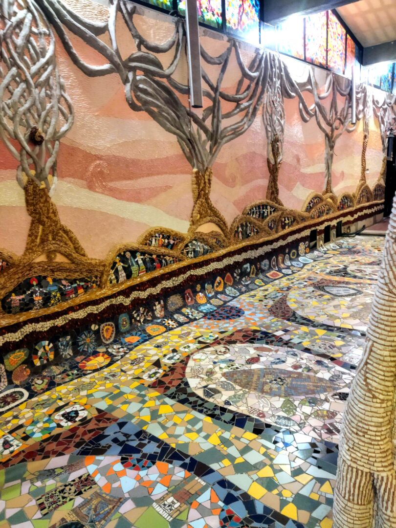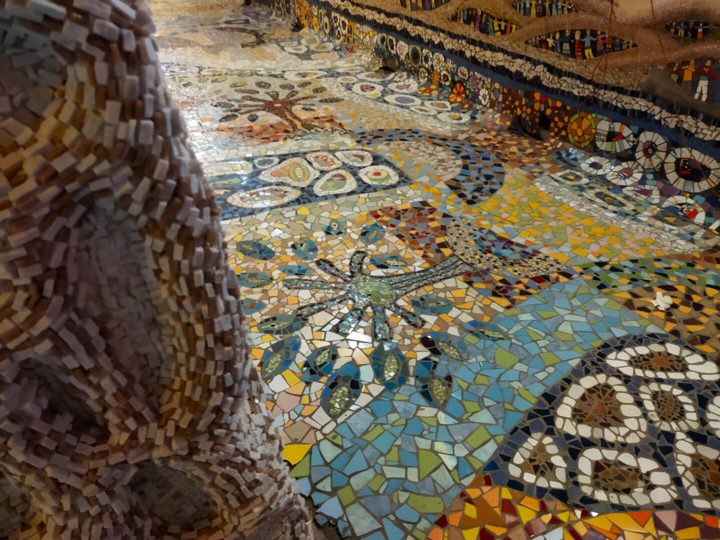 しかしこの完成を見るまでは、まだまだ膨大な作業が必要です。世界各国から提供される素材を管理してモザイク用に切断したり、小さなモチーフのモザイクの数々の管理と貼り付けなど、通常はアンドレイ―ナがほぼ1人でやっているから。しかし作業をボランティアで行うために世界中からやってくるアーチストを受け入れたり、また寄付を頂く代わりに見学ツアーや体験プランを行っています(詳細は記事最後の基本情報をご覧ください)