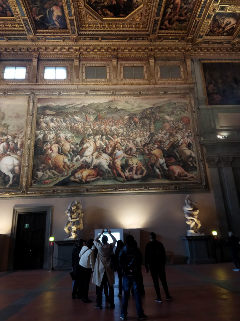 右後ろがシエナとの戦いで勝利したヴァザーリ作「カッシナの戦い」
