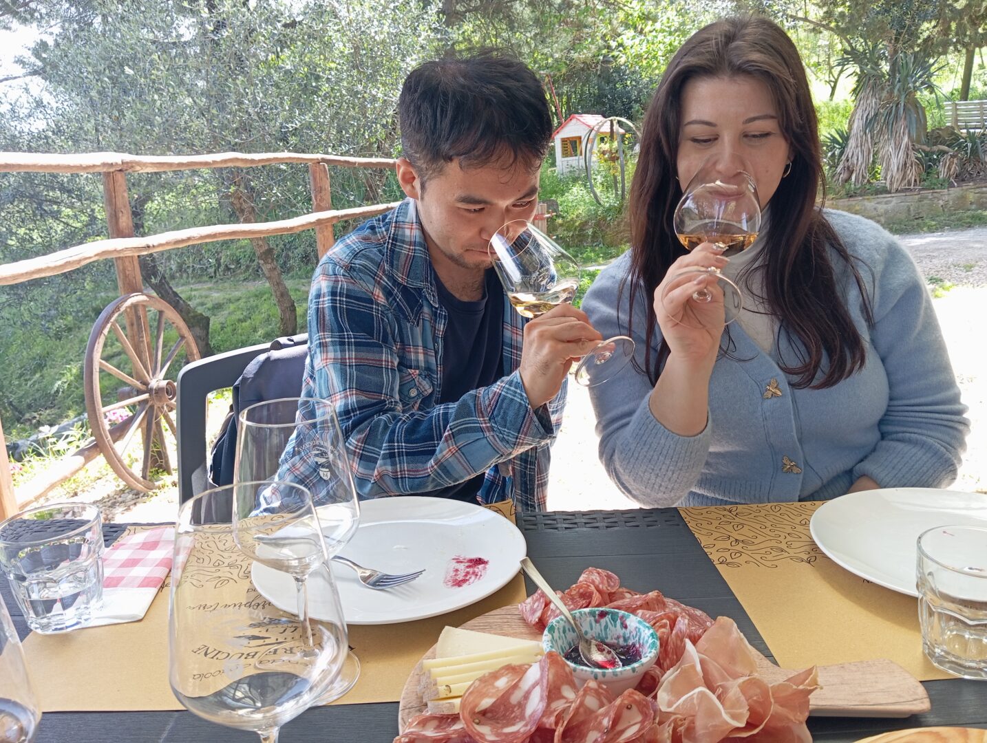 フィレンツェからハイヤーで行くことももちろん可能ですが、ワイナリーのみの方はオリーブ畑とブドウ畑に囲まれた道でパノラマを見ながらのプチ・トレッキング。私はもう4回、お客様も2組ご案内していますが、歩くのが苦にならない方であれば全く問題ありません。ジャンルーカの料理教室に参加またはマッテオのアパートに宿泊される方はグレーヴェからの車送迎もありますので、フィレンツェから日帰りでワイナリーまたは料理教室と組み合わせて、もしくは1泊2日でゆったりとこの地を楽しむのも良いですね。ちなみにロレートのワイナリーは19時以降の夜のテイスティングもあるので、昼間は料理教室、夜に前菜付きテイスティングを夕飯にするのも良いかも・・・あとはアパートに帰って寝るだけ!(笑)1泊2日の場合だと行きか帰りの道中にパスタ工房見学をプラスして、キアンティの食を深めるアクティビティ満載になりますよ。
