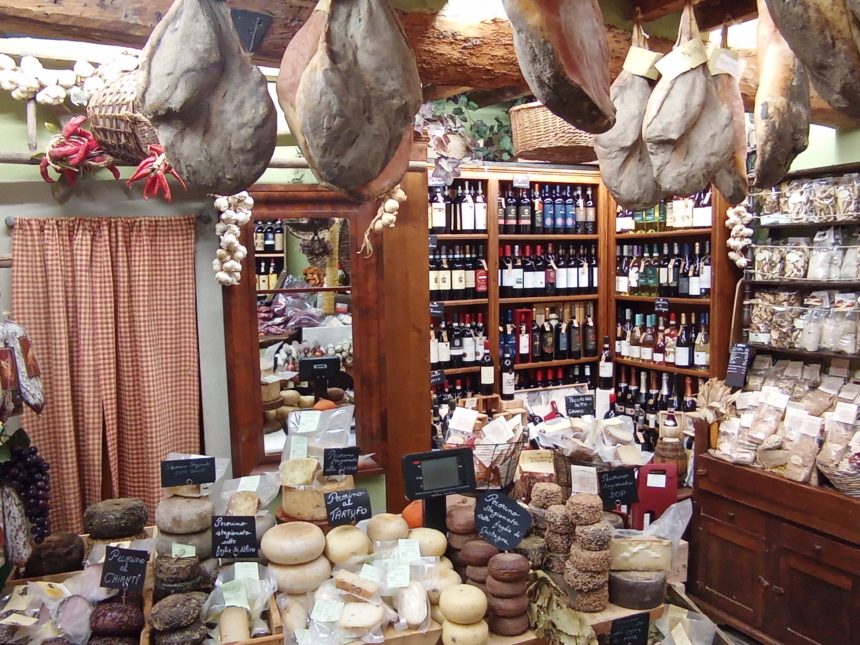 フィレンツェだと食材屋さんも多いですが、個人的に推しているアレッツォではこの2軒!どちらもグランデ広場至近で行きやすいうえ、店内にあふれるような様々な食材に目が奪われ、お財布の紐がゆるくなってしまうこと必至です。皆さんはどちらがお好みですか?いや、近いので両方行って品比べしてみてください!