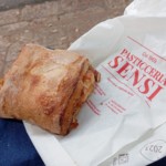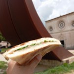 地方に来たらやはりその土地のものを・・・ということで、がっつりと猪の煮込みにウンブリアのパン、トルタ・アル・テスト添え。ワインももちろん、ウンブリアを代表するワインの1つ、モンファルコの赤を。