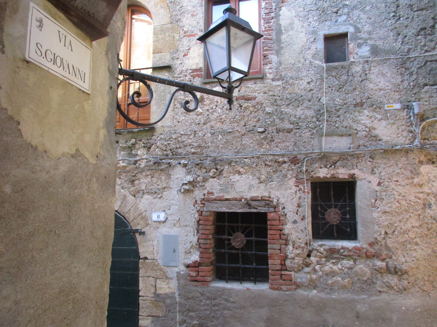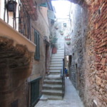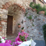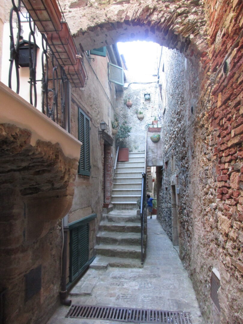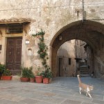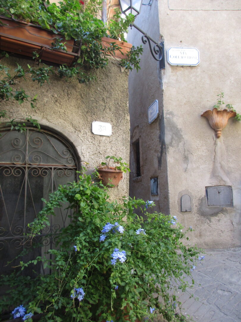 旧市街は海から少し内陸の丘の上にあるので、 近景は濃い緑、遠景にはティレニア海の青がずーっと見渡せます。ここから朝日や夕日を見る毎日を想像するだけで、夢心地になりますね。この城壁にも「11月通り」とちゃんと名前がついていて、村の4分の1周くらいをこの城壁でぐるり。幅は1人が通れるくらいの狭さで、壁の高さはそれほど高くないので、お子さん連れの方は注意が必要です。