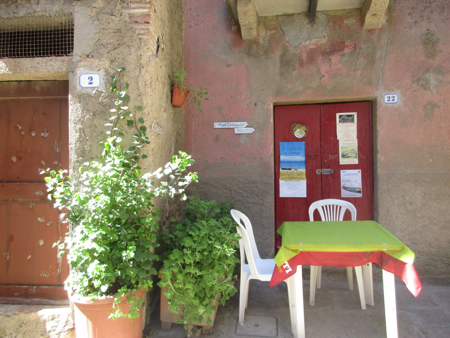 本土の中世の村の路地というと、建物も道も石やレンガが積まれて可愛らしいイメージが多いのですが、ここは島だからか粗野なプリミティブな感じ。村の作りから島の厳しい自然や歴史が感じられます。