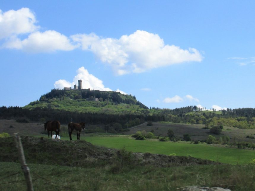 オルチャ渓谷の5つの市(ピエンツァ、モンタルチーノ、サン・クリーリコ・ドルチャ、カスティリオーネ・ドルチャ、ラディコーファニ)で一番南に位置し、一番高い所にあるのがラディコーファニです。周りに高いモノがなくぽっかり浮かんでいて、道中からはこんな風に近づいてきます。