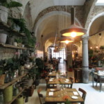 まず1つ目はサン・ロレンツォ地区、リッカルディ宮殿の裏にあるLa Ménagère。元は1896年に開店した同名の老舗家庭雑貨店があった場所で、近年「コンセプトレストラン」として再オープンしました。外席も少しありますが、中はとても広く、入ってすぐは注文カウンタとテーブル席、奥はソファーのある小さい部屋、左は雑貨や花の売り場もあるテーブル席、更にその左にテーブル席と奥にもテーブル席があります。