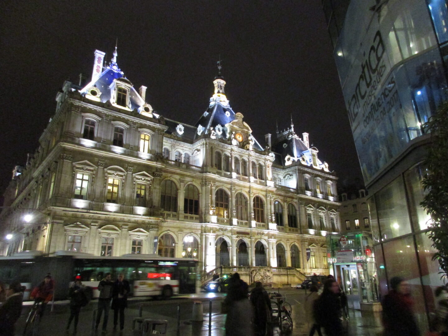 テロー広場。写真正面は市役所の正面玄関、右がリヨン美術館。有名なバルトルディの噴水は、私が行った時(2017年12月)は修復中でした (;・∀・)