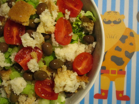 トスカーナ料理は、古くて固くなったパンをリサイクルする料理が多いです。冬の代表は、リボッリータ。でも黒キャベツは、もうシーズン終了。夏の代表は、パッパ・アル・ポモドーロ。でもまだ旬真っ盛りではない。なので、今のシーズは、もっぱらパンツァネッラにしています・・・季節性はないけれど、やっぱりこれも、気分的には夏かな~。