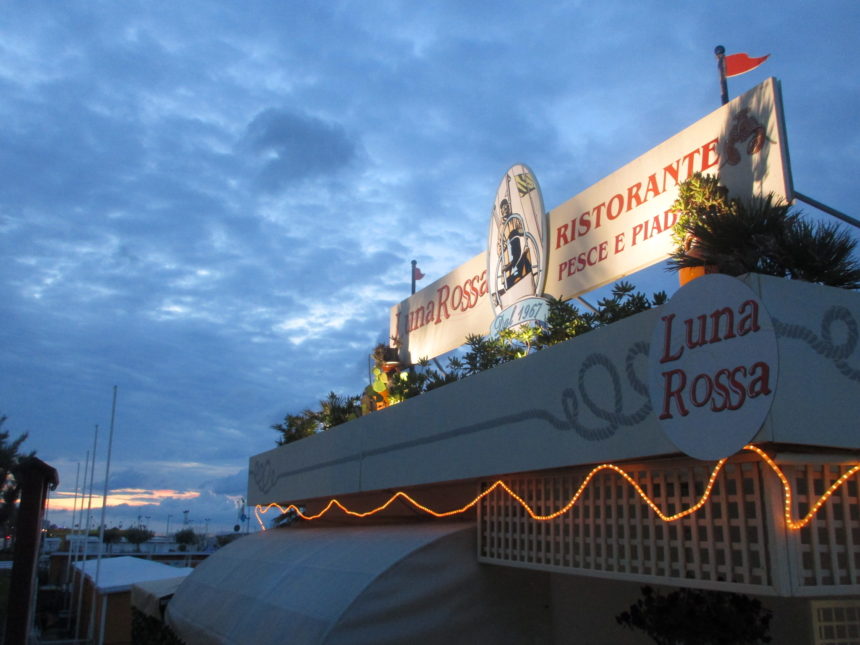 「イタリア・イン・ミニアトゥーラ」に行った時は、リミニに宿泊しました。リミニは中部アドリア海随一?の一大ビーチリゾート。まだシーズン始まる前だったので、海沿い近くのホテルが激安!そして、調べた末に行ってみたのが、ここ、LUNA ROSSAです。リミニ中心街から南へ2キロほど行った Bellarivaゾーン、ビーチの家100番の中にあります。