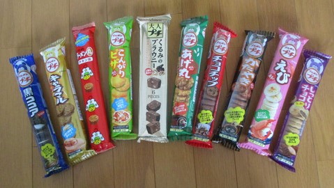 それは、ブルボンのプチ・シリーズです!私が日本にいる頃からあったので、もうロングセラーの商品ですが今やその種類は 20種類以上で、実家近くのスーパーでも一棚丸ごと占めていました。これの何がいいかって、