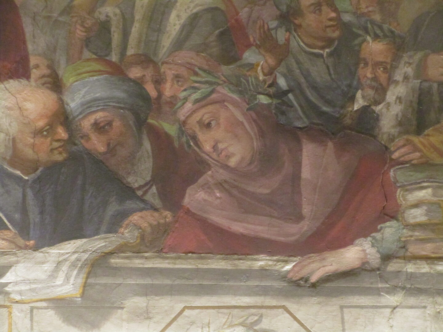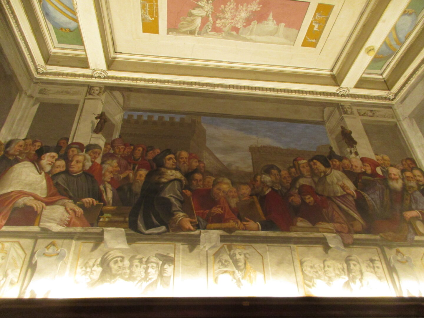 その後に続く、「夜と昼の間」「天使の間」「書斎」もギャラリーと同じく1600年代半ばまでに装飾された部屋ですが、面白いのが「書斎」。壁面上部には詩人、天文学者、人文学者、哲学者などトスカーナが輩出した偉大な人物の肖像画が描かれ、これはガリレオかな?ダンテかな?と想像しながら鑑賞するのが楽しい!