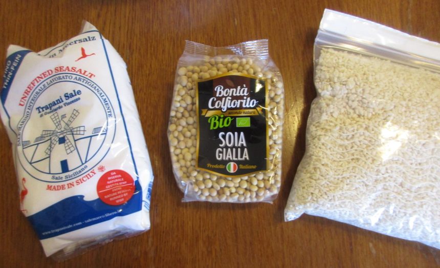 先週の話ですが・・・和食の先生でもあるラファエリさんが、昨年から始めた「味噌の会」。昨年は日にちが合わず、無念のうちに冬が終わってしまったのですが、今年はママ友の協力もあって参加することができました (((o(*゚▽゚*)o))) 。味噌の会とは何ぞや?彼女が日本で習ってきた味噌づくり、それをイタリアの材料で一緒に仕込みます。イタリア産の米から彼女が手作りした米麹、イタリア産の有機大豆、シチリア産の天然塩!