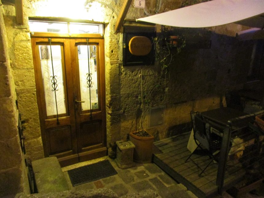トスカーナ料理と一言で言っても、その地方だけに根付いた独特の料理も数多くあります。マレンマ地方はこちらの記事にも書いたように羊を多用し、また「小さなエルサレム」でもあるピティリアーノでは、ユダヤ人の食文化も取り入れたものなど、他では食べられないメニューも多々。そんな伝統的なマレンマ料理をこれでもか!と堪能されてくれるのがこちら、Il Tufo Allegro。意味は「陽気な凝灰岩」、凝灰岩の村・ピティリアーノならではのネーミングです。