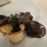 そしてメインは、やっぱり羊、トマトベースで煮込んだ Buglione=ブリオーネ。トスカーナ方言で「ごちゃ混ぜ」と言う意味で、羊のいろんな部位を煮込んでいます。羊はグリルかフライで食べることが多いのですが、この煮込みがもう言葉にできない美味しさ・・・シンプルに煮込んであるだけだと思いますが、もう肉もソースも旨味がガッツリ。ソースも全部、パンですくって、お皿を拭くくらいまで残さず食べて頂きたい一品です・・・単品のイノシシの黒オリーブ煮込みも同じく、肉もソースも美味しく、また見た目も美しいお料理の連続でした。