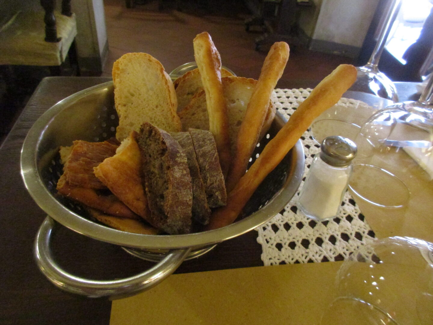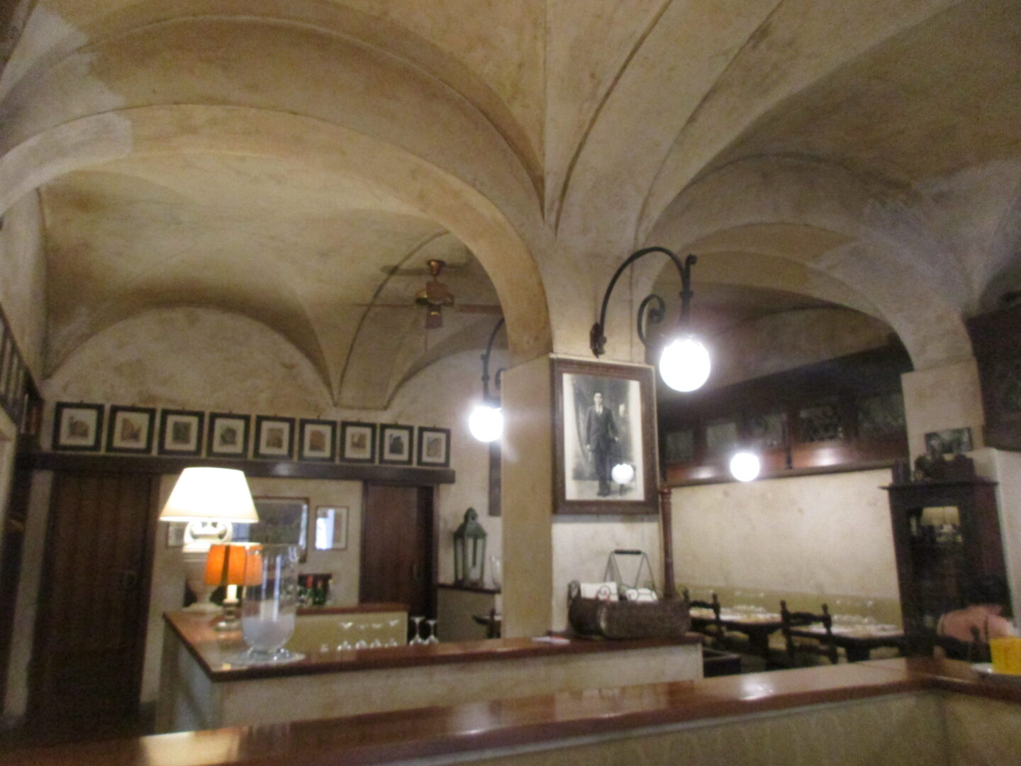 店内は奥に長く、全部で3ホールあります。案内してくれたのは、いかにもベテラン!の初老の紳士の給士係の方だったのですが、とても物腰が柔らかいのにテキパキしていて、まさにプロって感じで格好いい。ここでおススメを聞いてみると、やはりツーリストインフォで聞いたプラートの代表料理があったので、それを最後にお客様とシェアする形で、前菜1、スープ1、メイン2で選びました。