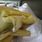 フィレンツェのソウルフードである「ランプレドット(牛の第4胃袋)」は、香味野菜で煮込んだものをグリーンソースで食べるのが定番です。それを挟んだランブレドット・パニーノ屋さんは旧市街だけでもたくさんありますが、個人的にイチオシはここ、Da’ Vinattieri(ダ・ヴィナッティエーリ)。穴倉(笑)のようなお店は時に列ができる人気です。