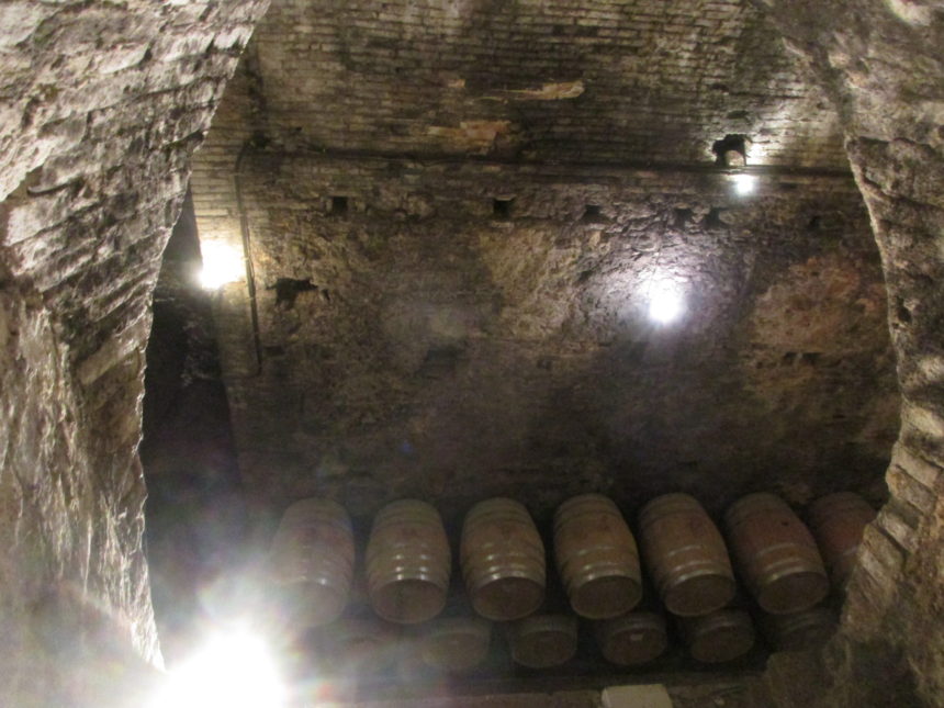これだけで、ワイン好き、いや建築や歴史が好きな方も興奮!ではないでしょうか。ただただ美しい、この空間に身を置くだけでも価値があります。内部は6.7mの柱とアーチによって3廊に分けられ、まるでロマネスク・ゴシック様式の大聖堂のよう。また、凝灰岩の土壌に掘って作られた空間のため、ワインに必要な湿度や温度、通気性を年間通じてキープしているそうです。